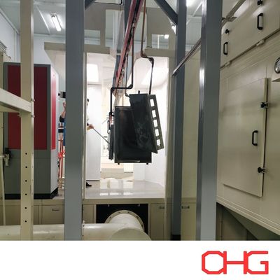 Después del curado, las piezas se someten a enfriamiento forzado por aire para estabilizar el recubrimiento.
