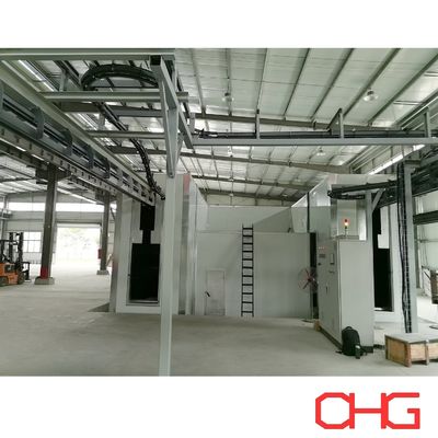 Esta línea automatizada de pintura en polvo está meticulosamente diseñada para procesar piezas metálicas de diversos tamaños y formas complejas. La cabina de pulverización está fabricada con material de polipropileno (PP) robusto, que proporciona una excelente resistencia a los productos químicos y garantiza una durabilidad a largo plazo. Al integrar la pulverización con pistolas automáticas con el recubrimiento manual complementario, el sistema ofrece flexibilidad y precisión en la aplicación, satisfaciendo una amplia gama de necesidades de acabado.