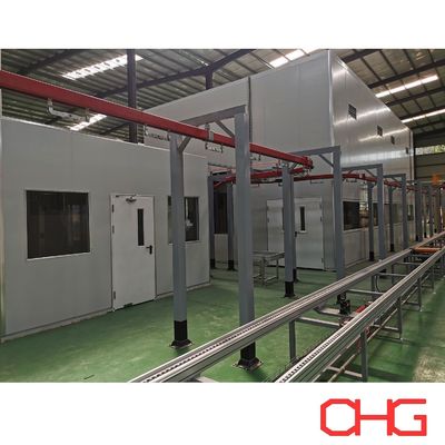 La sección de pretratamiento utiliza un sistema de transporte de tierra de tipo deslizante para el transporte estable de componentes pesados de los gabinetes.mientras que las secciones de pulverización y curado adoptan un sistema de transporte aéreo que opera a velocidad constante para garantizar la uniformidad del recubrimiento y la eficiencia de producción.